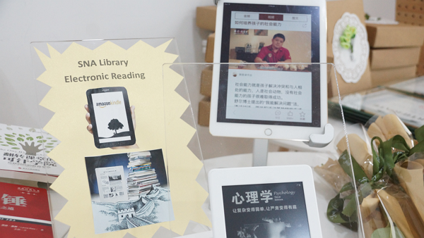 因为北美高中是一所国际化学校,所以北美图书馆也努力朝着国际化方向发展。图书馆不仅仅提倡纸质阅读,更将互联网阅读的思维引入图书馆。亚马逊KINDLE电子书,流行的樊登读书会,电子书数据库,知识视界视频数据库,为北美学子的阅读打开了视野,让阅读变得触手可及。